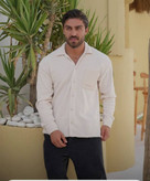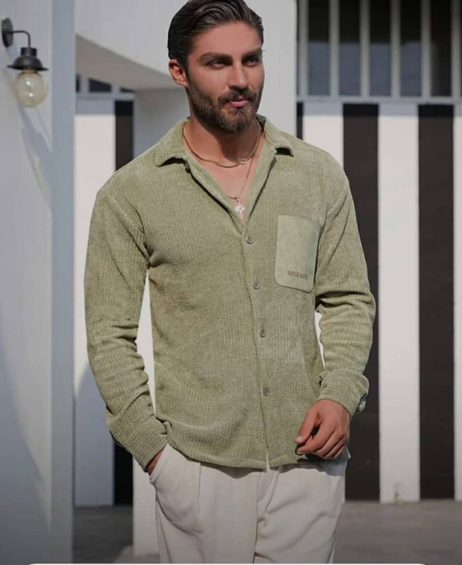 پیراهن مردانه گردباف ضخیم ترک با تک جیب چرم (کد-0124)