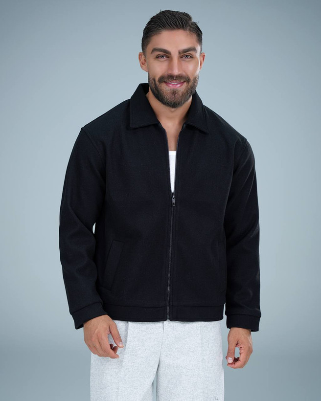 - رنگ مشکی ذغالی در دو تصویر تن مدل و تصویر دیگر به دلیل نور محیط کمی متفاوت است، رنگ جکت مشکی-ذغالی است.