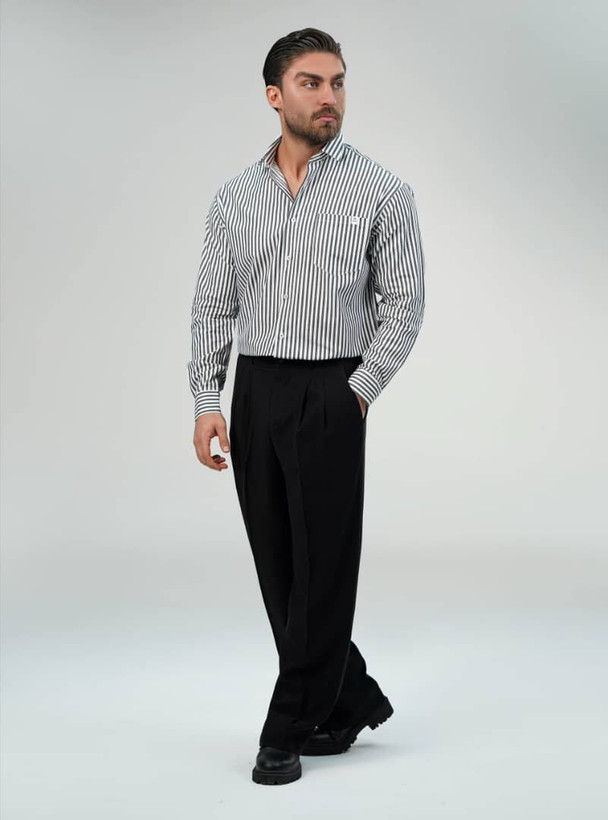 پیراهن مردانه راه راه پنبه ترک ( کد - 0170)