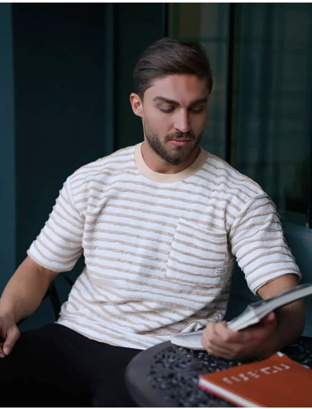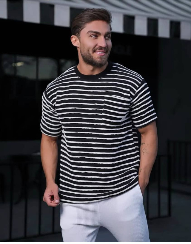 تیشرت مردانه راه راه تک جیب پارچه کنفی با کیفیت و خنک