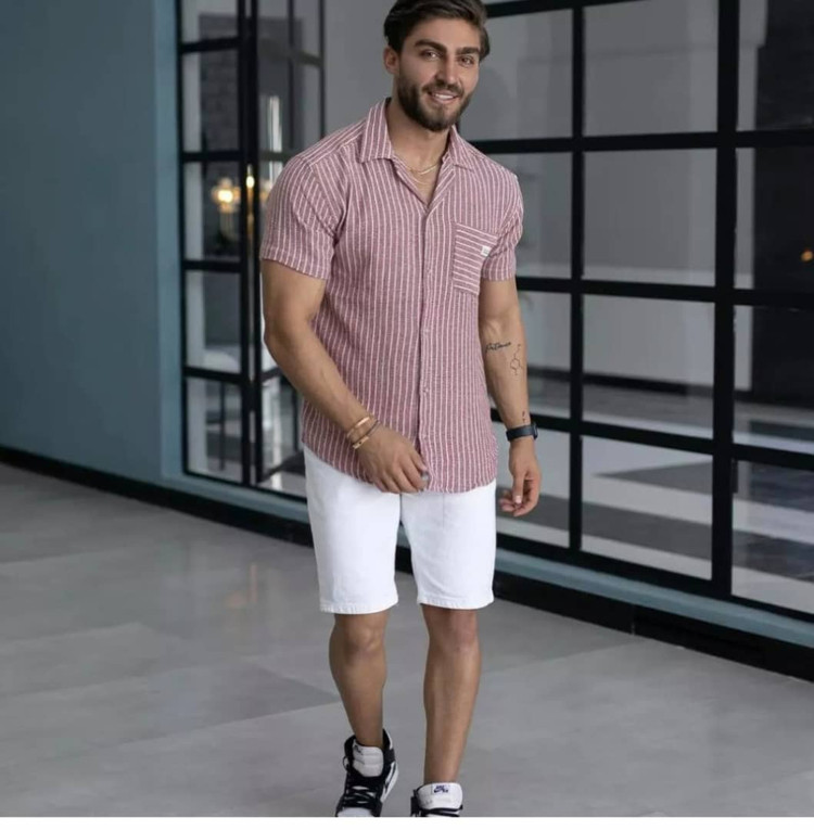 پیراهن مردانه آستین کوتاه پارچه کنفی با کیفیت