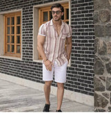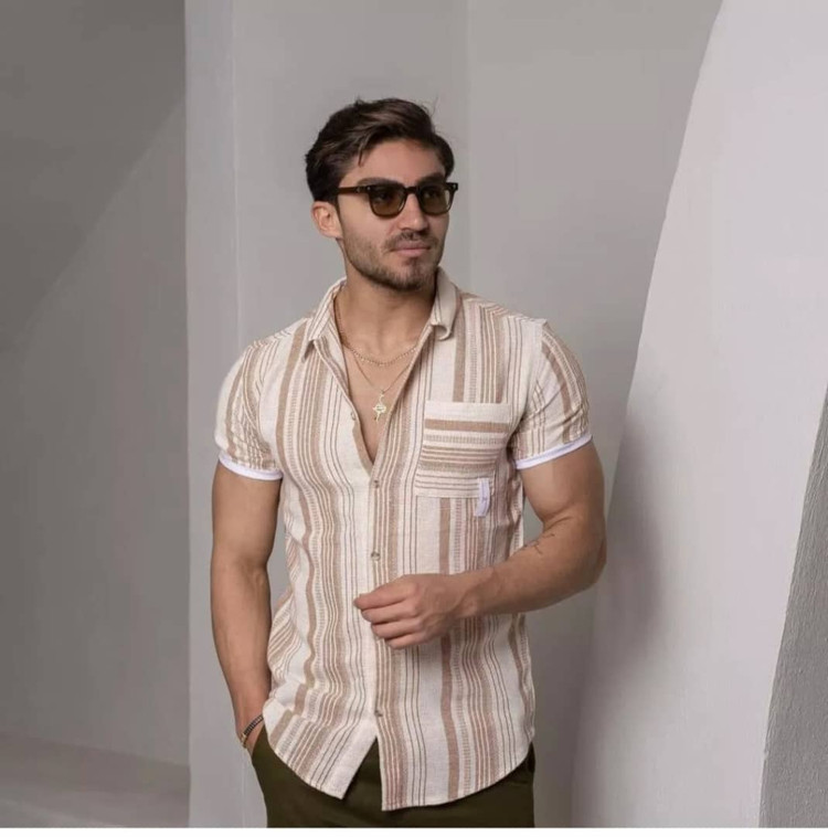 پیراهن مردانه آستین کوتاه کشباف پارچه کنفی با کیفیت