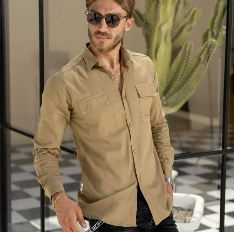 پیراهن مردانه آستین بلند پارچه کتان با کیفیت