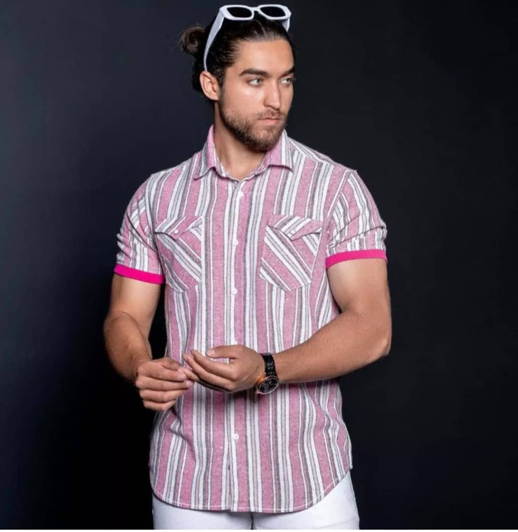 پیراهن مردانه آستین کوتاه کشباف پارچه کنفی با کیفیت