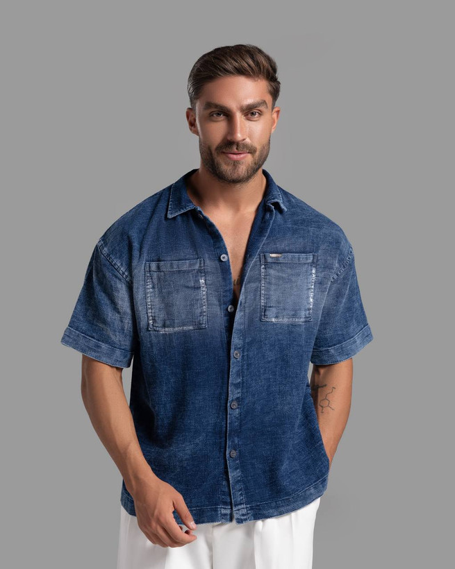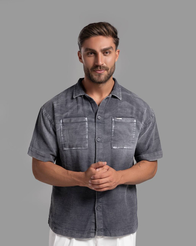 پیراهن مردانه مدل آستین کوتاه دوجیب سنگشور پارچه گردباف