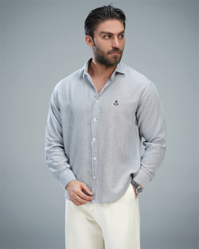 پیراهن مردانه آستین بلند پارچه لینن ترک با کیفیت - مناسب فصول گرم و استایل کژوال